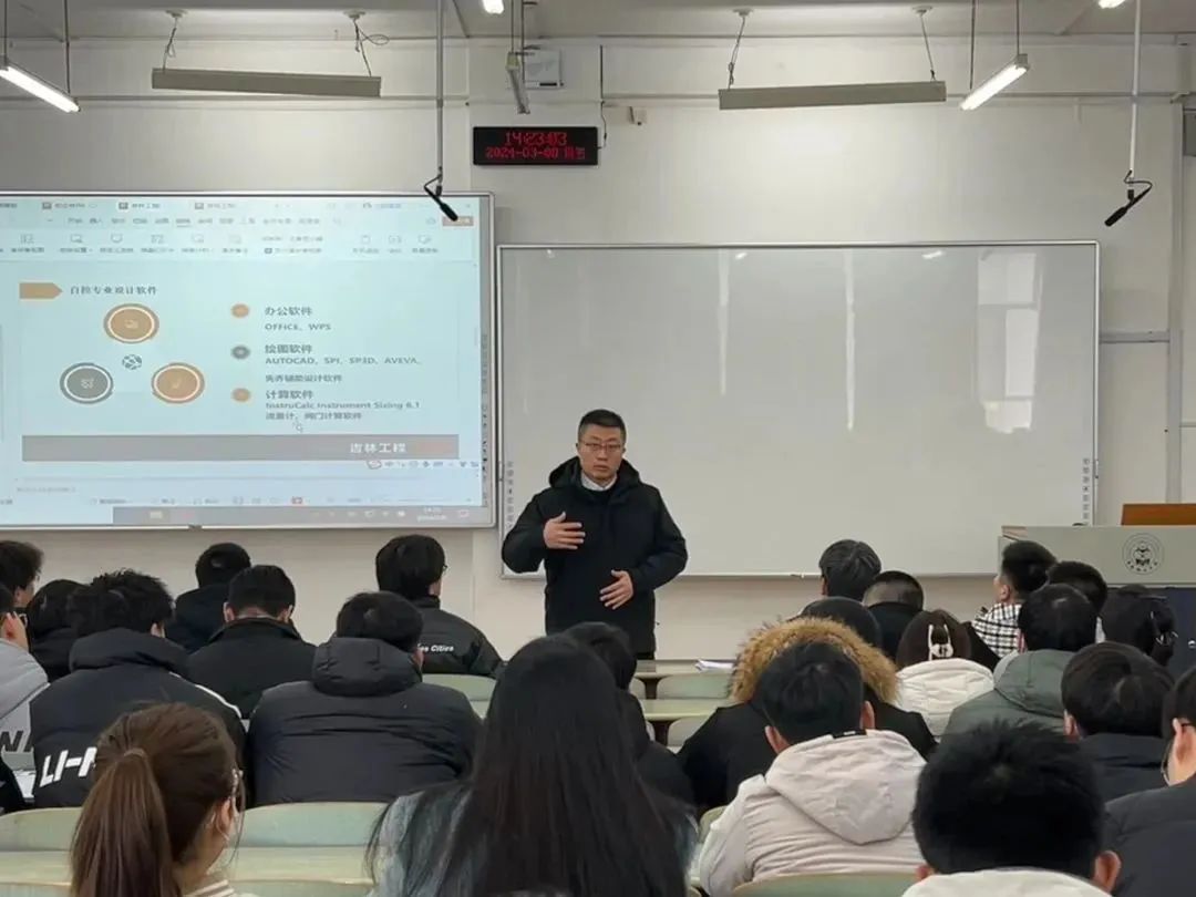 另一方面,他结合工作经历,向同学们详细介绍中石油吉林化工工程有限公司的发展历程、特色企业文化、工作内容以及人才需求,帮助大家对当前的就业形势有了更清晰的了解和认知。面对同学的提问,他积极传授经验,从实际出发,给出个性化的指导意见。