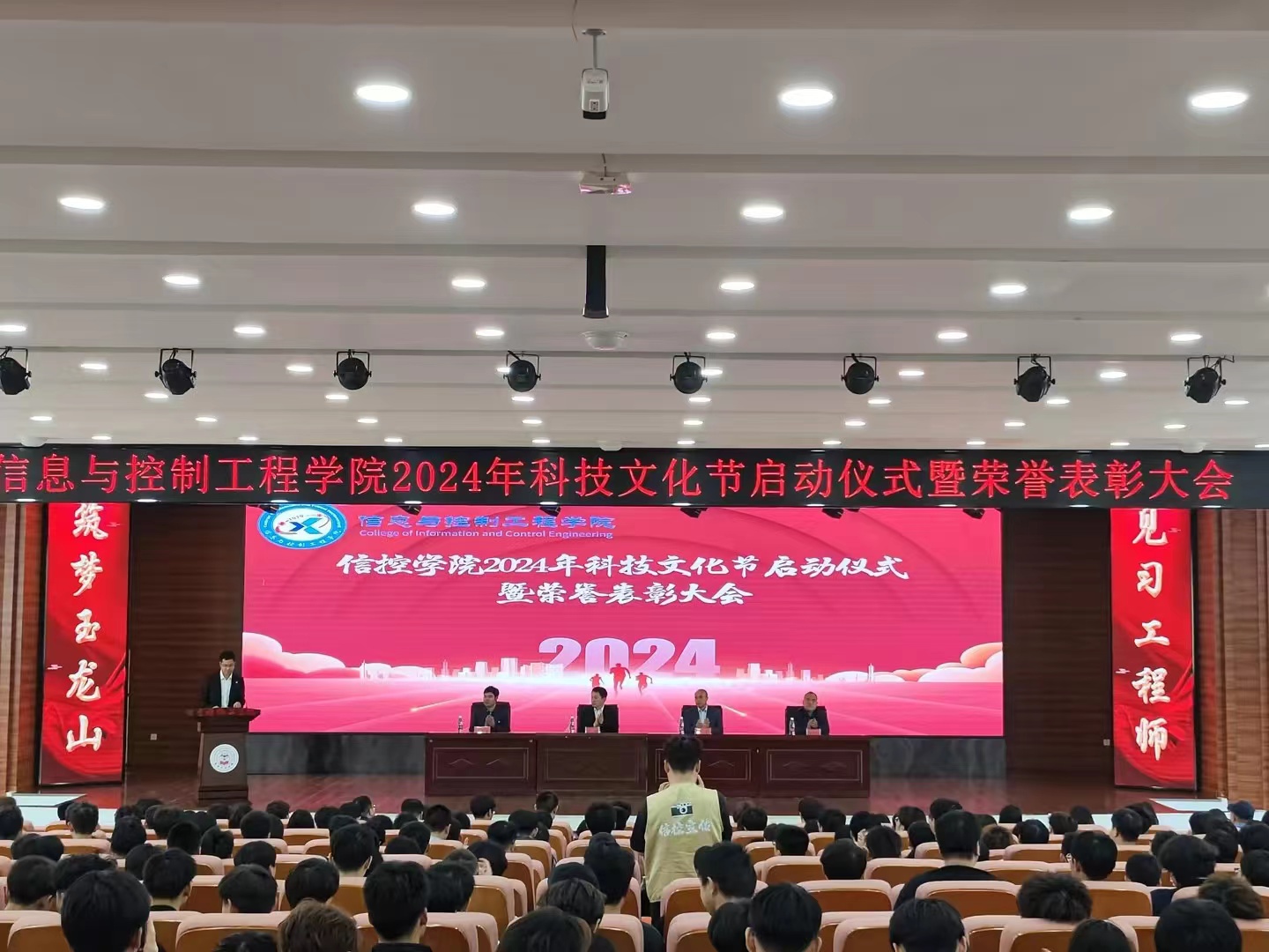 为进一步增强我院学生创新意识,培养创新能力,激励广大学子踊跃参加课外科技实践,5月23日,信息与控制工程学院在二教报告厅召开2024年科技文化节启动仪式暨2023年科技文化节荣誉表彰大会。本次大会由张嘉诚老师主持,信控学院党委书记宫勋、院长于军、副院长陈北辰、副院长辛瑞昊、全体辅导员老师及部分学生参与此次会议。