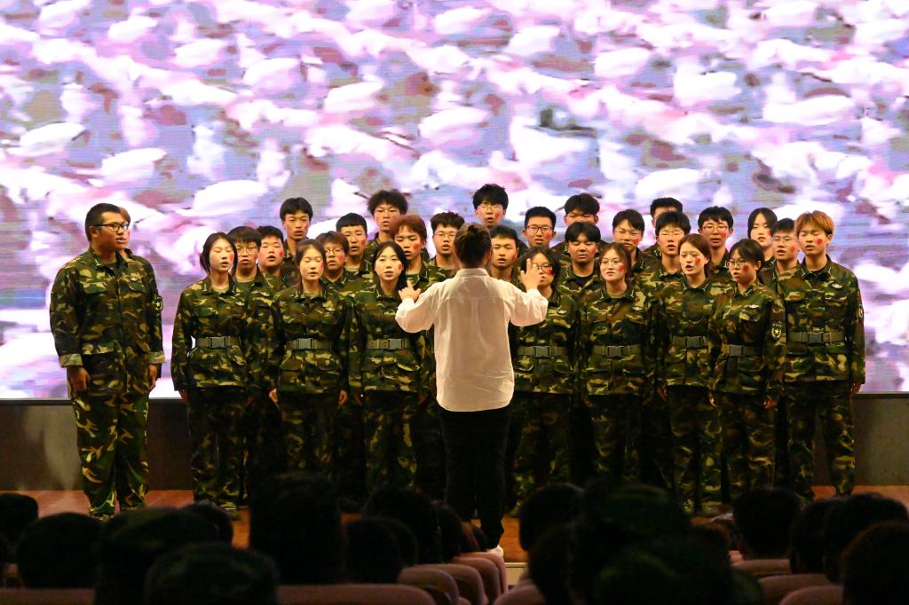 一首首耳熟能详的红色歌曲在校园内回荡。《光荣啊,中国共青团》的激昂,《强军战歌》的雄浑,《祖国不会忘记》的热血......每一首承载着厚重历史记忆的红歌,震撼着同学们的心灵,燃烧着同学们的爱国情怀。同学们身姿挺拔、歌声嘹亮,用跃动的红色音符传递对祖国深深的爱与敬畏之情。