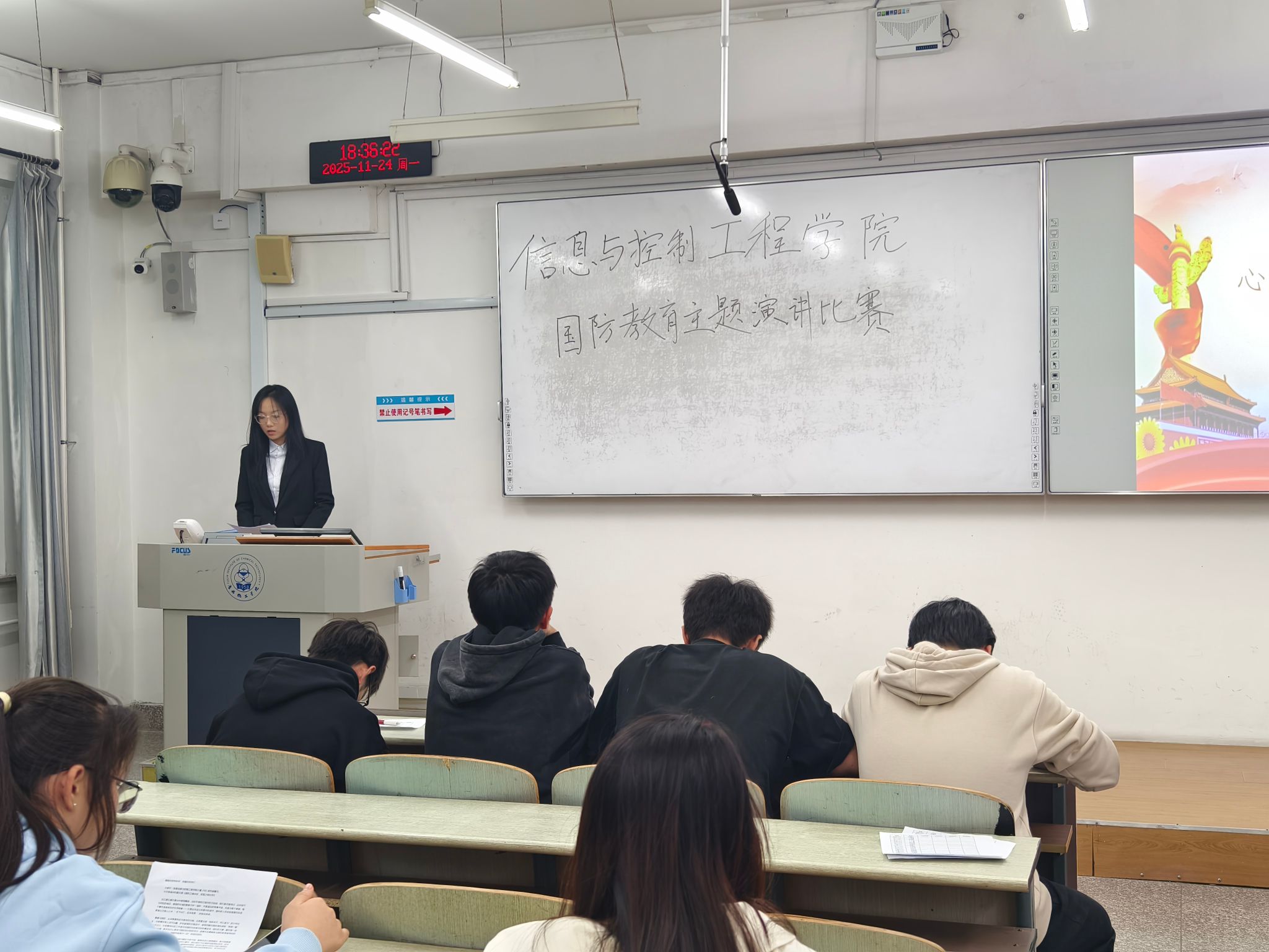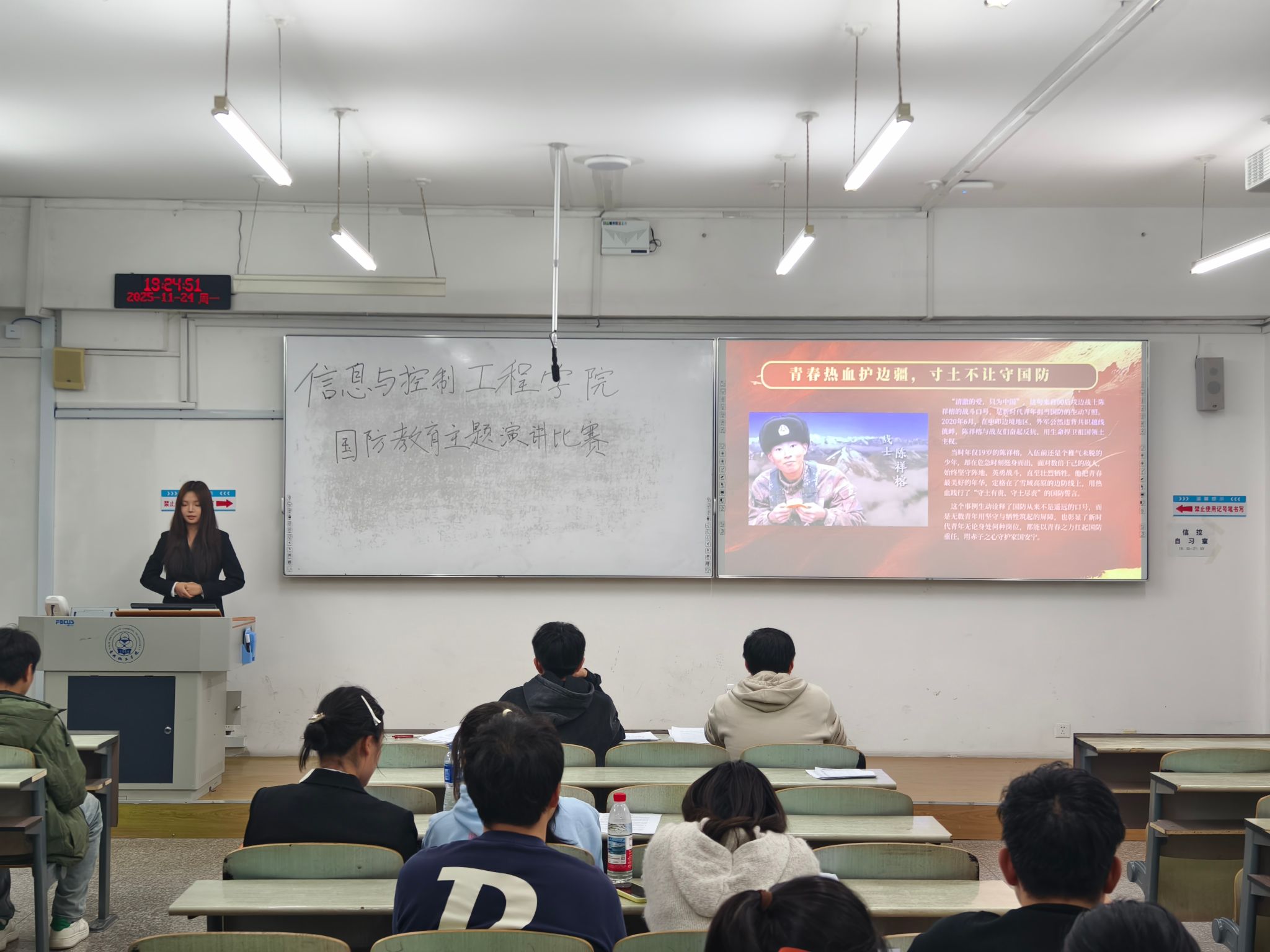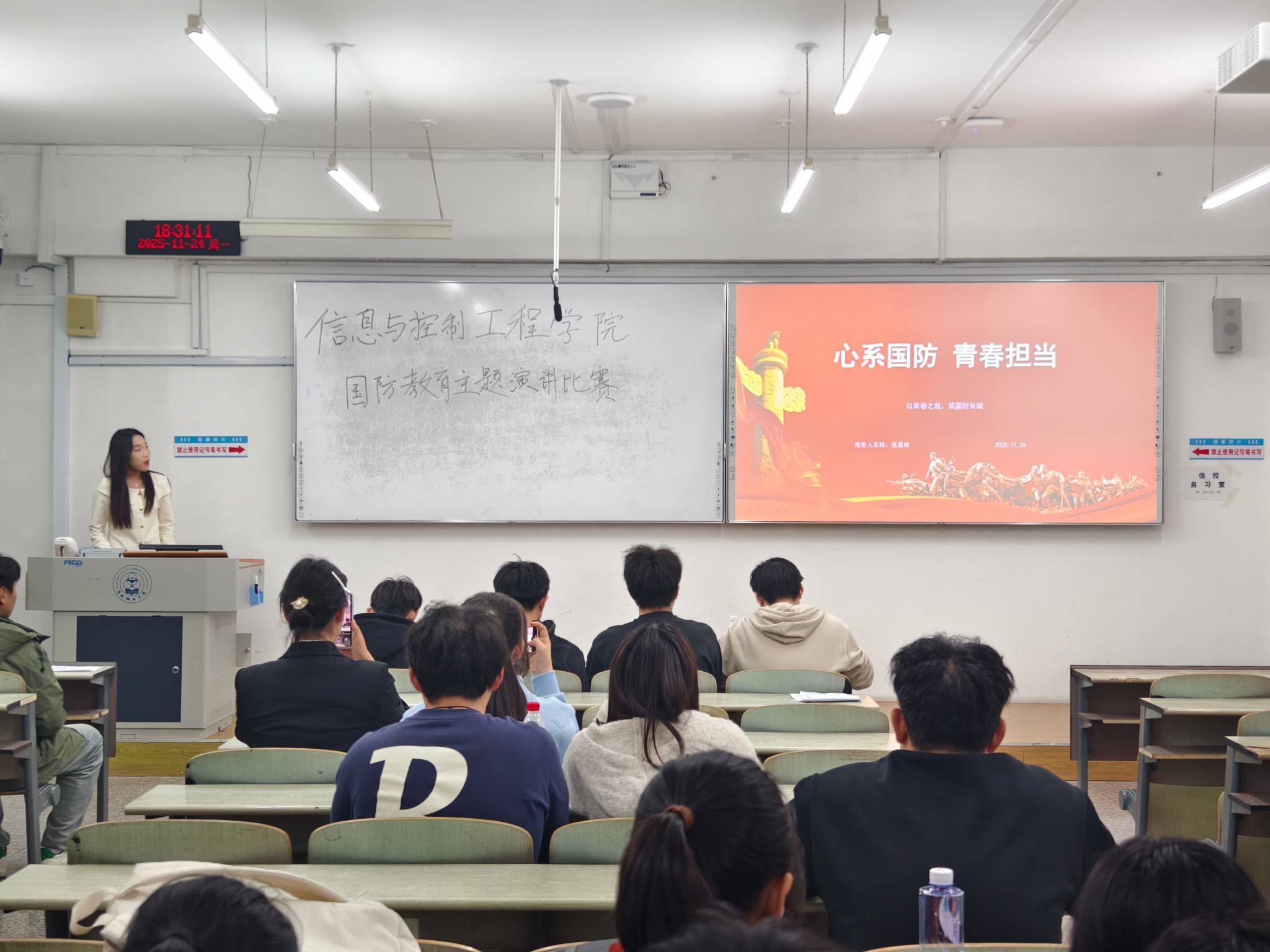 国防是民族的脊梁,青年是国家的未来。同学们的精彩演讲将赤诚之心守护家国安宁的观念展现得淋漓尽致。让我们以青春为笔,以担当为墨,在新时代的国防画卷上,书写属于信控青年的精彩篇章!心系国防,青春无悔;强国有我,使命在肩!