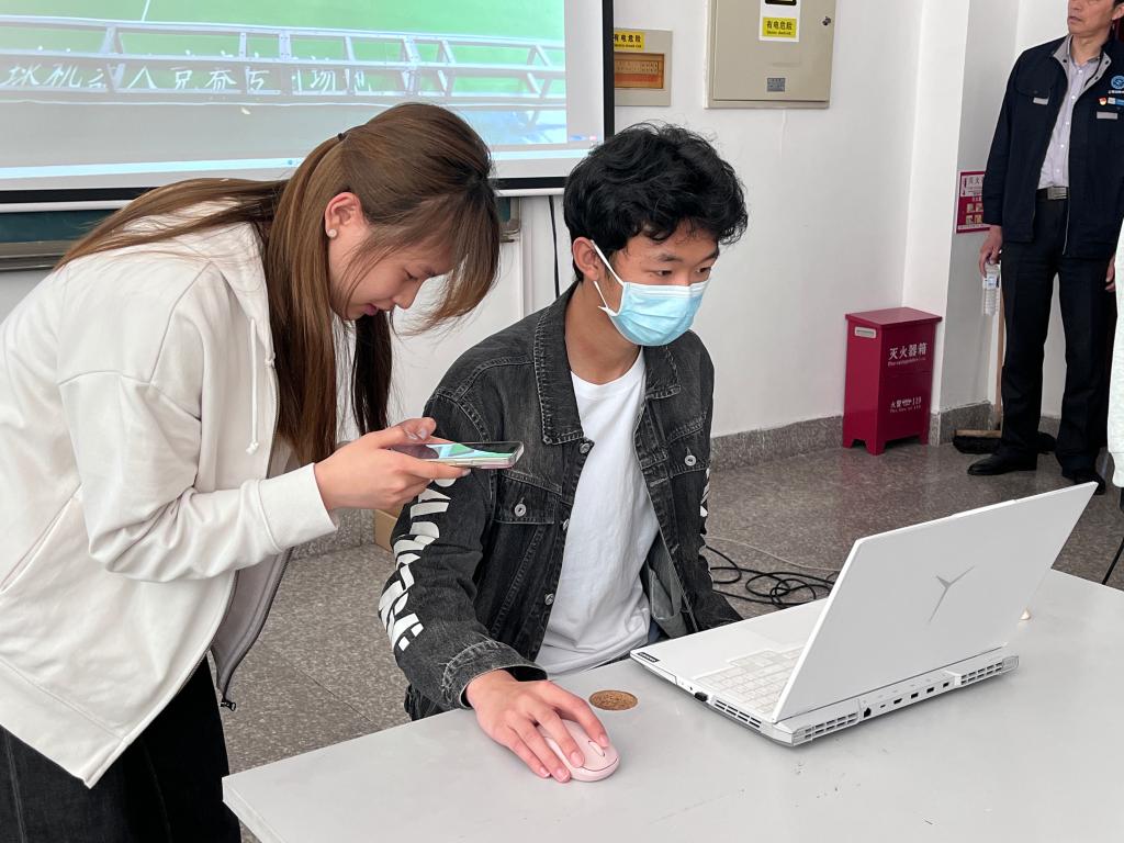 经过了五分钟的精心调试,比赛正式开始,进入到了白热化的角逐。赛场上同学们全神贯注,精准操控着各自的机器,使其如履平地般地稳步前行。而在一旁等待的同学们也毫不松懈,他们聚精会神地观摩比赛,不断汲取着经验,力求在接下来的比赛中提升速度,避免任何可能出现的失误。整个赛场沉浸在紧张而有序的氛围中,每一个细节都凝聚着同学们的智慧与汗水。
