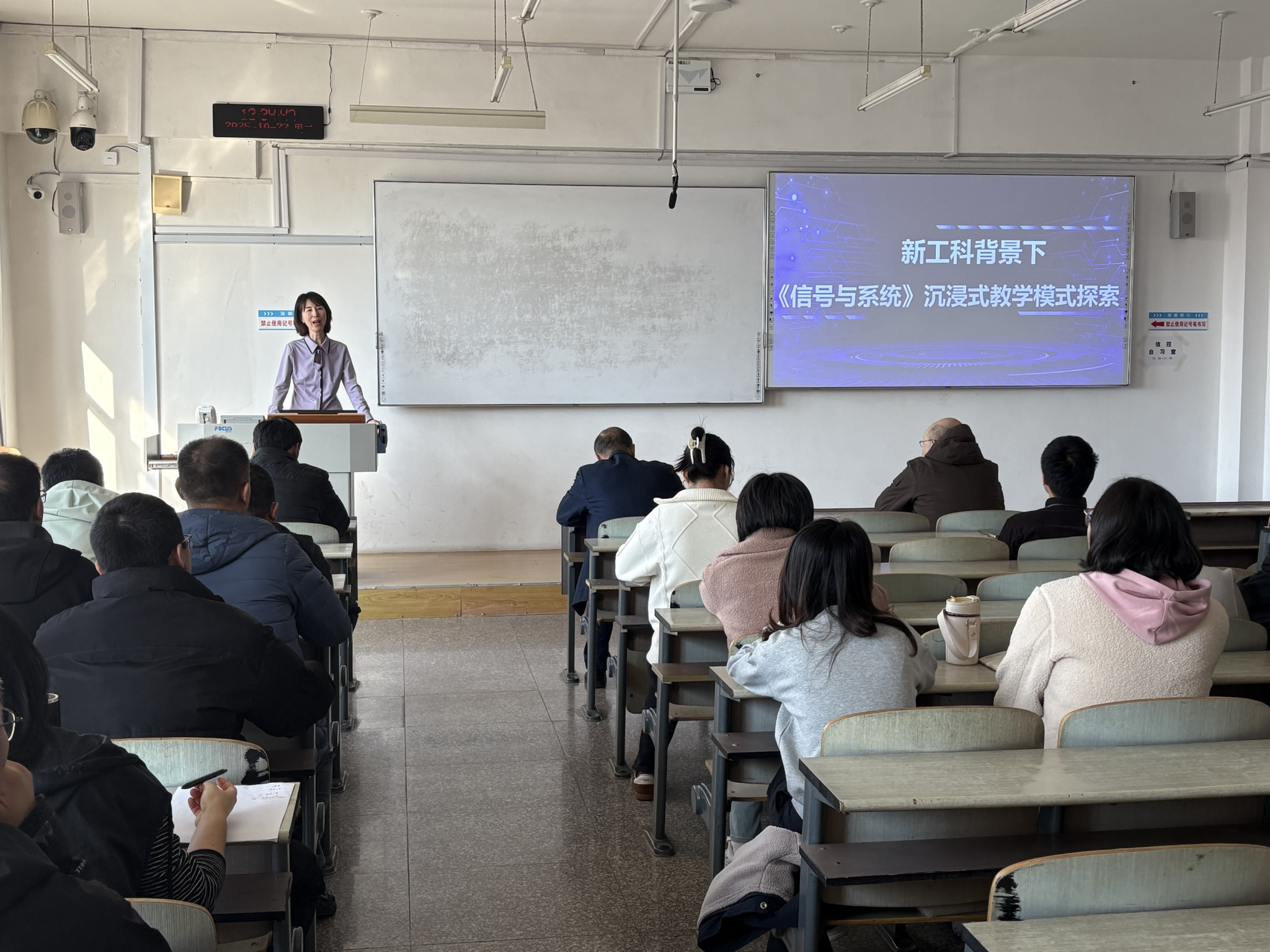 本次活动邀请荣获第五届全国高校教师教学创新大赛新工科副高组三等奖、“超星杯”第五届吉林省高校教师教学创新大赛副高组一等奖的青年教师张慧颖副教授做经验交流分享。交流会上,张慧颖副教授以“新工科背景下《信号与系统》沉浸式教学模式探索”为主题,结合个人教学实践和参赛经历,详细阐述了如何从教学目标、教学内容、教学方法、教学模式、教学评价等关键环节开展教学创新,如何将信息技术与课堂教学、课程思政与教学内容等元素进行深度融合,并解答了教师们在备赛过程中遇到的问题,参会教师受益匪浅。
